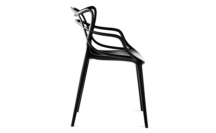 Masters Stacking Chair(大师叠椅)是大名鼎鼎具有鬼才之称法国籍天才设计师Philippe Patrick Starck的家具设计作品,Good Design Award 2010 和 Gold Dot Award 2013的获奖作品,至今,仍为业内人称赞和追逐,是一把收藏价值较高的经典椅。其给人感觉是由3根藤缠起来,4根细长的腿,看起来椅子很宽敞,很舒适,较其他椅子,它很独特;当然,它还非常坚固,你不需要担心它是否能承受一个人的重量。这款椅子外观别具一格,事实上,它是独特和清新的结合体;Masters椅由纤细椅腿作支撑,座位空间很大,并且舒适感极强。这款椅子最吸引人的是其特殊的椅背,三个不同靠背向下延伸,在椅座处融合,形成柔美的交叉线条,从而打造出丰满而空灵的空间感。Masters椅实用、舒适、易于叠放。